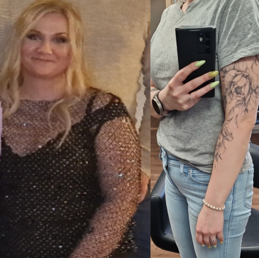 ”Det är exakt 1 år mellan bilderna. 32kg ha det blivit totalt! Å det känns så himla bra! Och jag ha ändå inte behövt förbud eller förmaningar, det är ju det som är bäst! Att man bara hittar nyckeln till det så är det så himla lätt när det är rätt! Tack till dig som har en så himla bra approach och gör det så himla mycket lättare att förstå!"